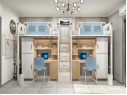公寓書(shū)桌床: 1、公寓床架: (1)雙人位公寓床,尺寸長(zhǎng)4500mm,寬900mm,高2100mm。 (2)床立柱:采用正六邊形無(wú)縫鋼管,直徑65mm(±...點(diǎn)擊詳情